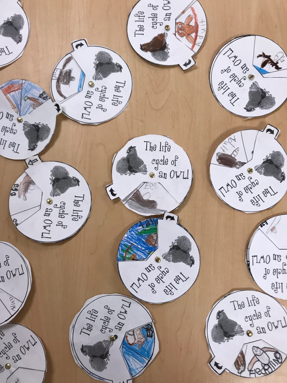 We've been studying the lifecycle of owls this week. Students created their own lifecycle wheels to teach their kindergarten buddies about the topic!